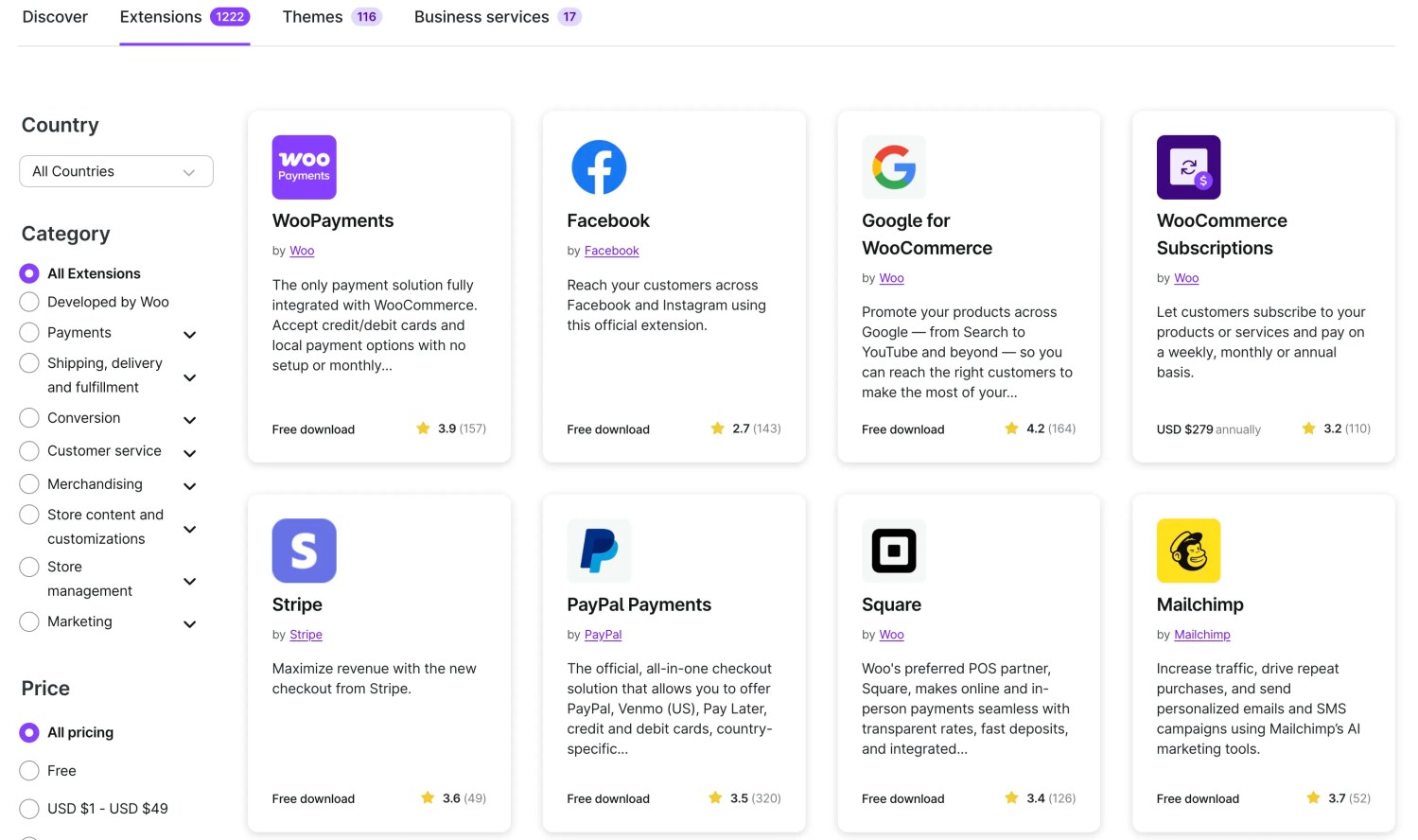 With WooCommerce, flexibility comes standard: The WordPress plugin repository has more than 54,000 options that help with everything from design to functionality and marketing. WooCommerce stores can access an additional extension marketplace with over 800 add-ons built specifically for ecommerce.