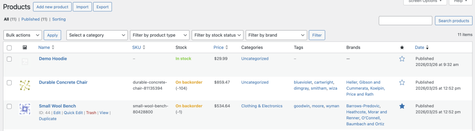 woocommerce/products-create - Result: A new product appears in the store!